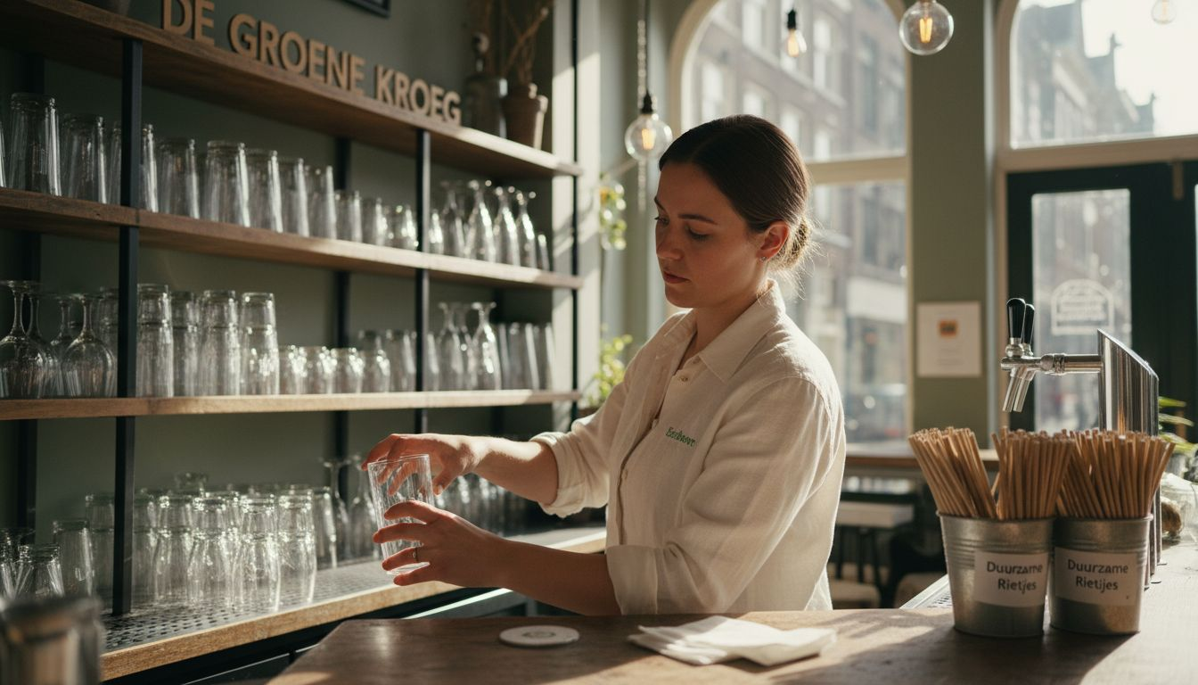 Professionele tip: Maak een eenvoudig dashboard met je belangrijkste metingen (afval, water, energie) en hang dit zichtbaar op in je bar. Je team ziet direct de impact en blijft gemotiveerd.